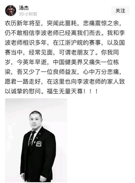 国家健美健身队教练李波离世死因曝光48岁的副主任惋惜痛心
